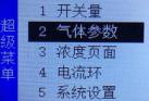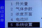 超级菜单的气体参数页面包括:气体单位、正常区间、归零启用、归零值、 准备时间、无气标定、高报启用、低报启用。每一项功能都可以进行修改参数